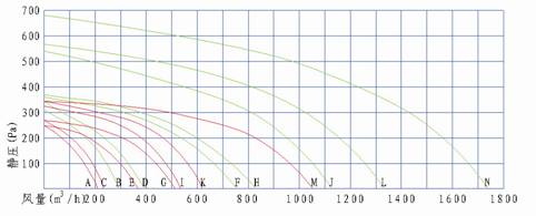 三、KPSY圆形管道送风机性能曲线图